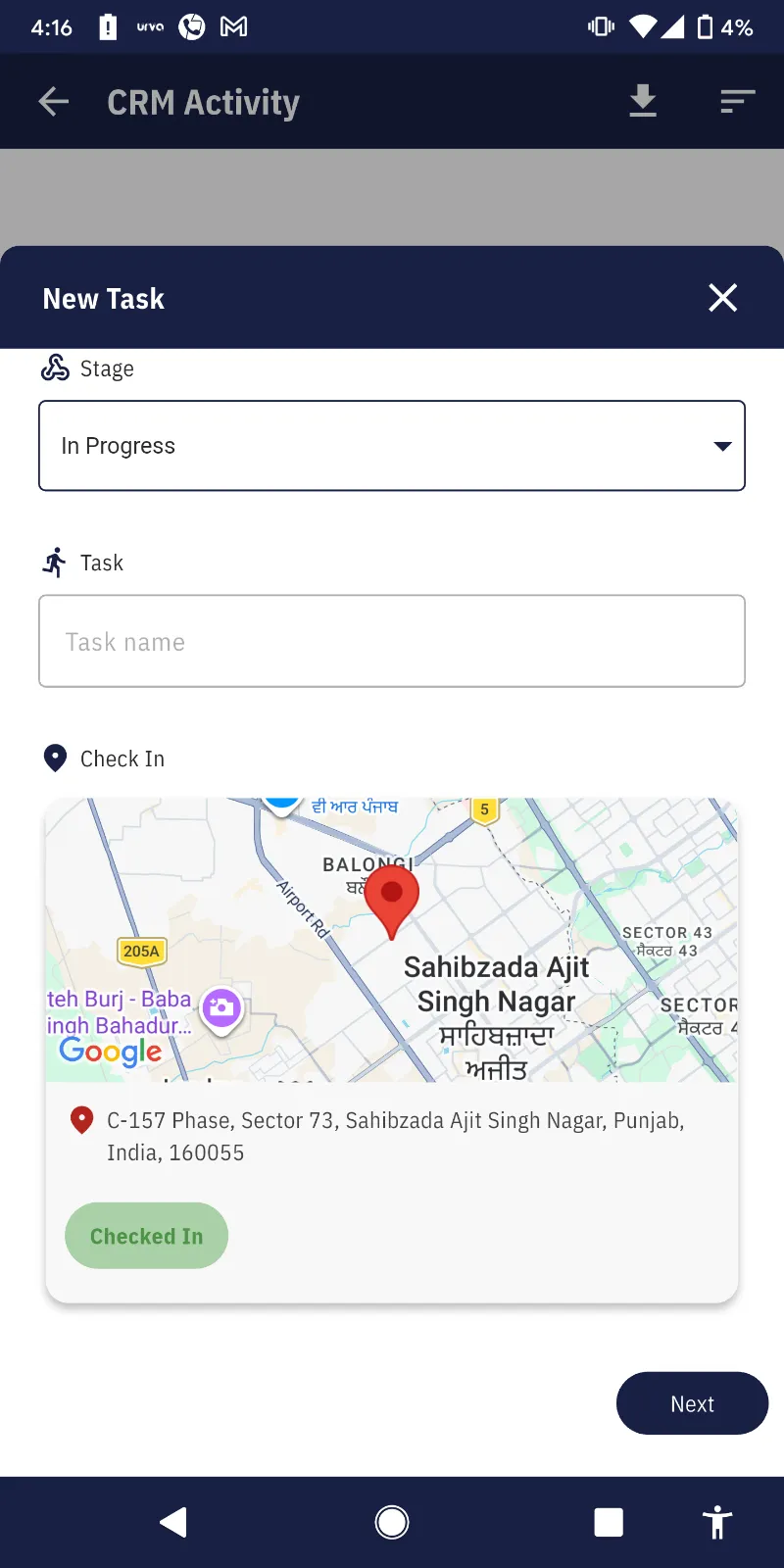 2. Perform Check-In to begin the activity. Click Next to proceed to the form