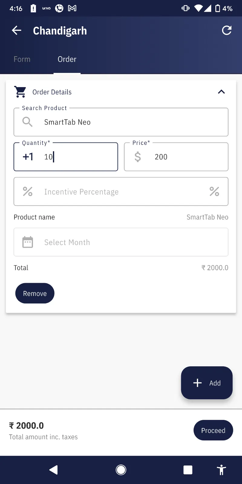 6. Input the quantity for the selected product. The Unit Price will be auto-populated by the system.