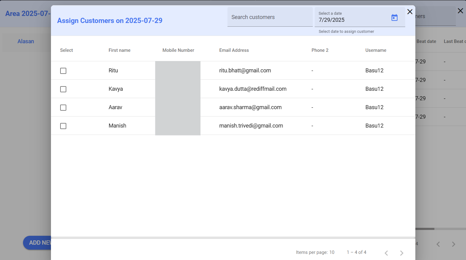 You cannot add customers from another area unless area assignment is changed by the admin.